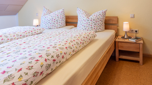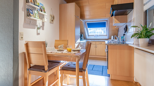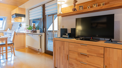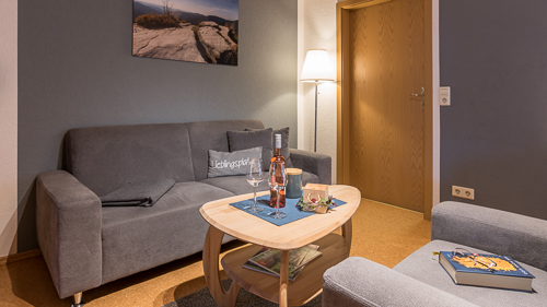 Unsere Ferienwohnung Bergblick wurde im Jahr 2022 erneut vom Deutschen Tourismusverband mit 4 Sternen ausgezeichnet. Ein einladendes Ambiete für 2-3 Personen und ein großer Balkon zur Bergseite lädt zum Entspannen ein. Die Wohnung hat zwei getrennte Schlafzimmer und verfügt über ein großzügiges Wohnzimmer mit einer angrenzenden Küche.