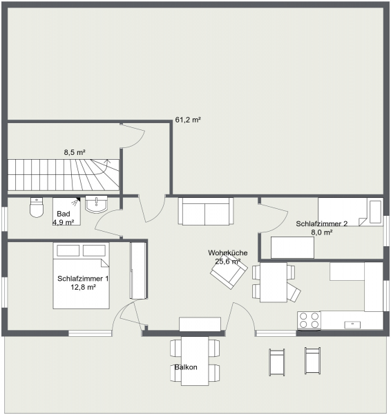 - Zugang vom Wohnzimmer und Schlafzimmer